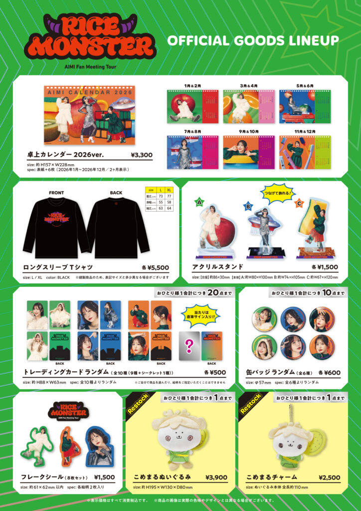AIMI Fan Meeting Tour RICE MONSTERグッズ販売詳細決定!